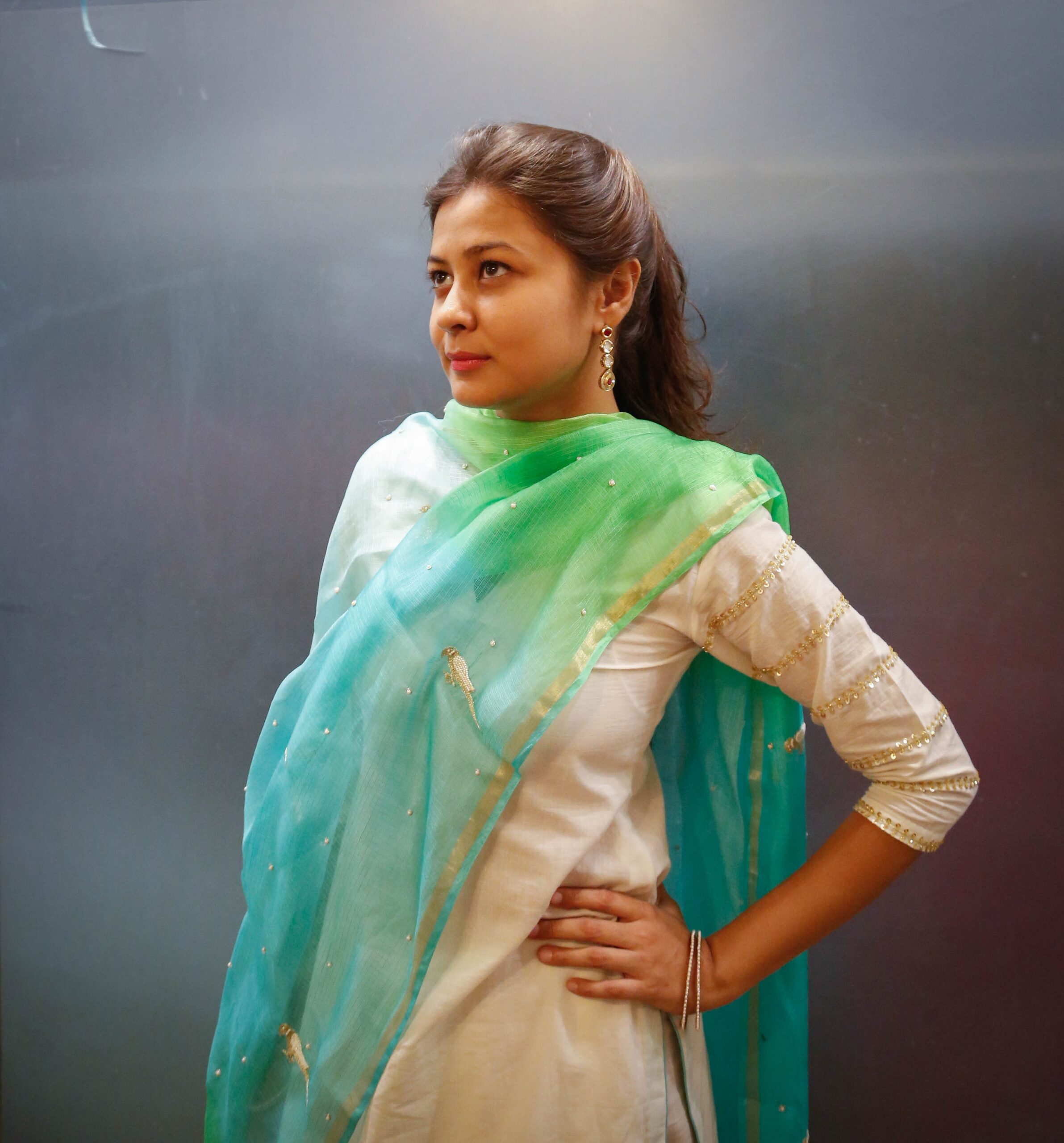 White Suit with Shaded Dupatta